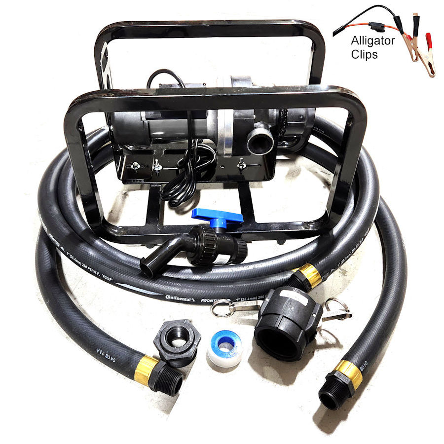 FLOWSERVE CT6-3E5DA-002, 12V HIGH FLOW CADDY PUMP KIT LESS METER, EPDM SEALS. 18 GPM MAX, 1″ FNPT INLET X 1″ FNPT OUTLET, 30 PSI MAX, 15-20 AMP (OPERATING), 20′ POWER CABLE WITH ALLIGATOR CLIPS. INCLUDES PUMP, 2X 12′ HOSES (1″ DIA), VALVE/SPOUT, 2″ FEMALE COUPLER.