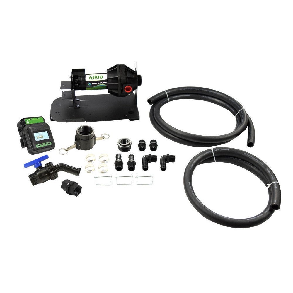 DURA PRODUCTS DPABS-6318V-110, 110V 6000 SERIES AUTO-BATCH TRANSFER PUMP KIT, WITH METER & HOSES, VITON, 18 GPM MAX, 30 MIN DUTY CYCLE, 3 AMP DRAW MAX. METER AUTOMATICALLY SHUTS OFF PUMP AFTER FLUID HAS BEEN DISPENSED.