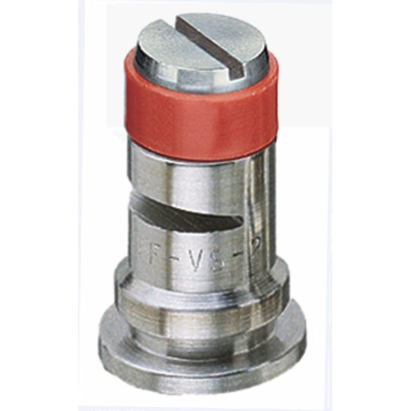 TEEJET TF-VS2, SIZE 2 TURBO FLOODJET TIP NOZZLE STAINLESS STEEL RED. 0.4 GPM AT 40 PSI, STAINLESS STELL & ACETAL CONSTRUCTION, FITS CAP CP25600-*-NYR.